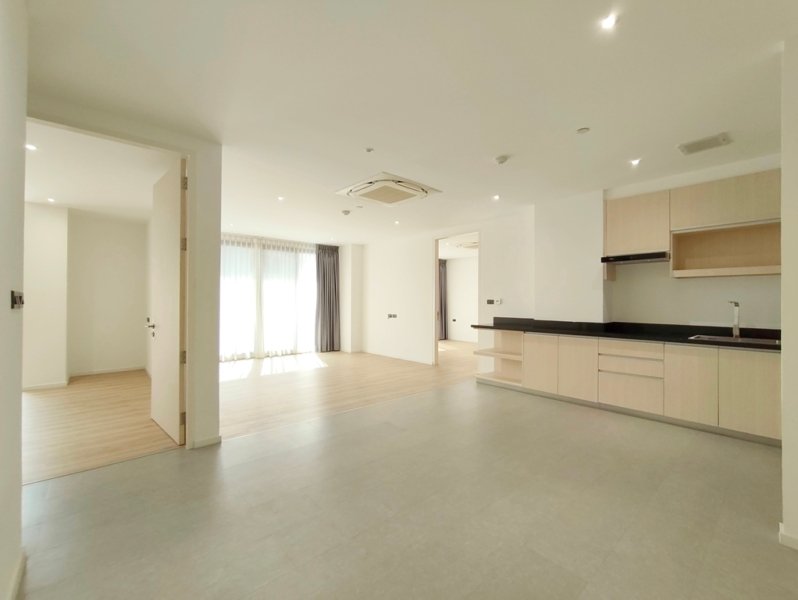 Unfurnished 2 bedroom apartment for rent in Thonglor is situated on a middle floor level of the building. Unfurnished luxury 2 bedroom at The Pentacles for rent has 2 bathrooms and a generous 100 SQM of usable living space.