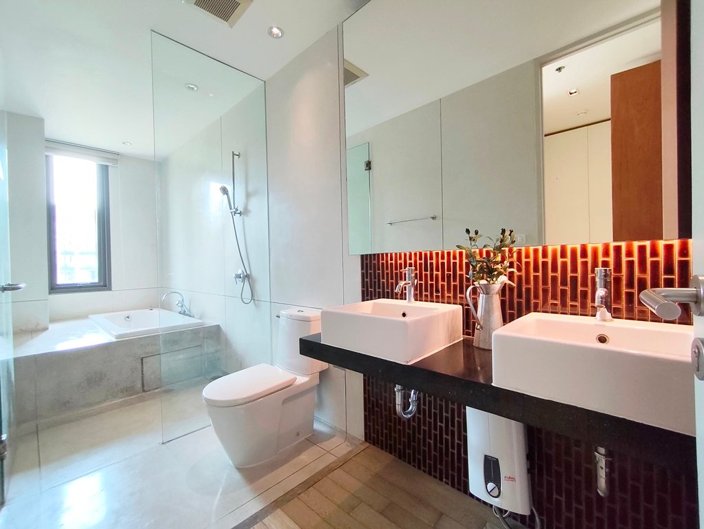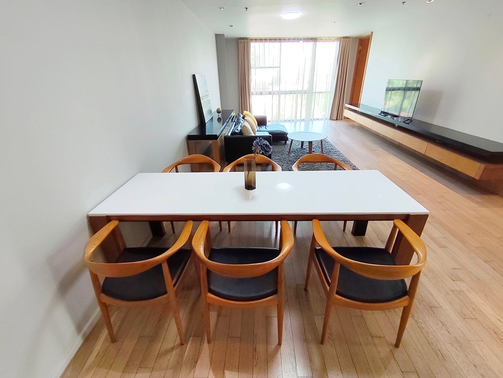 Remarkable 2 bedroom condo for rent in Thonglor is situated on a middle floor level of the building with a spacious balcony. Fully furnished luxury 2 bedroom at Promphan 53 for rent has 2 ensuite bathrooms, guest toilet and a generous 141 SQM of usable living space.