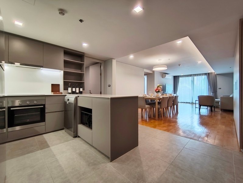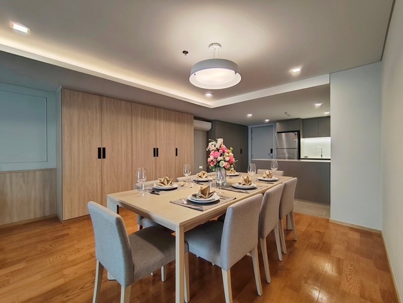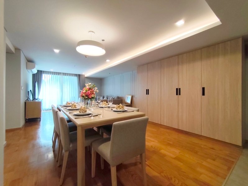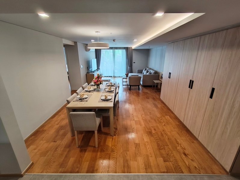 Phenomenal pet friendly 3 bedroom apartment for rent in Asoke is situated on a lower floor level of the building. Fully furnished luxury 3 bedroom at Piya Apartment Sukhumvit 15 for rent has 3 bathrooms and a generous 142 SQM of usable living area.