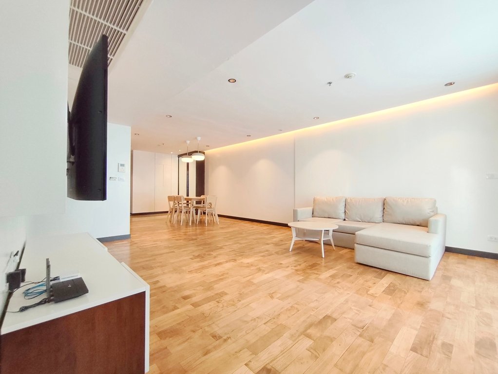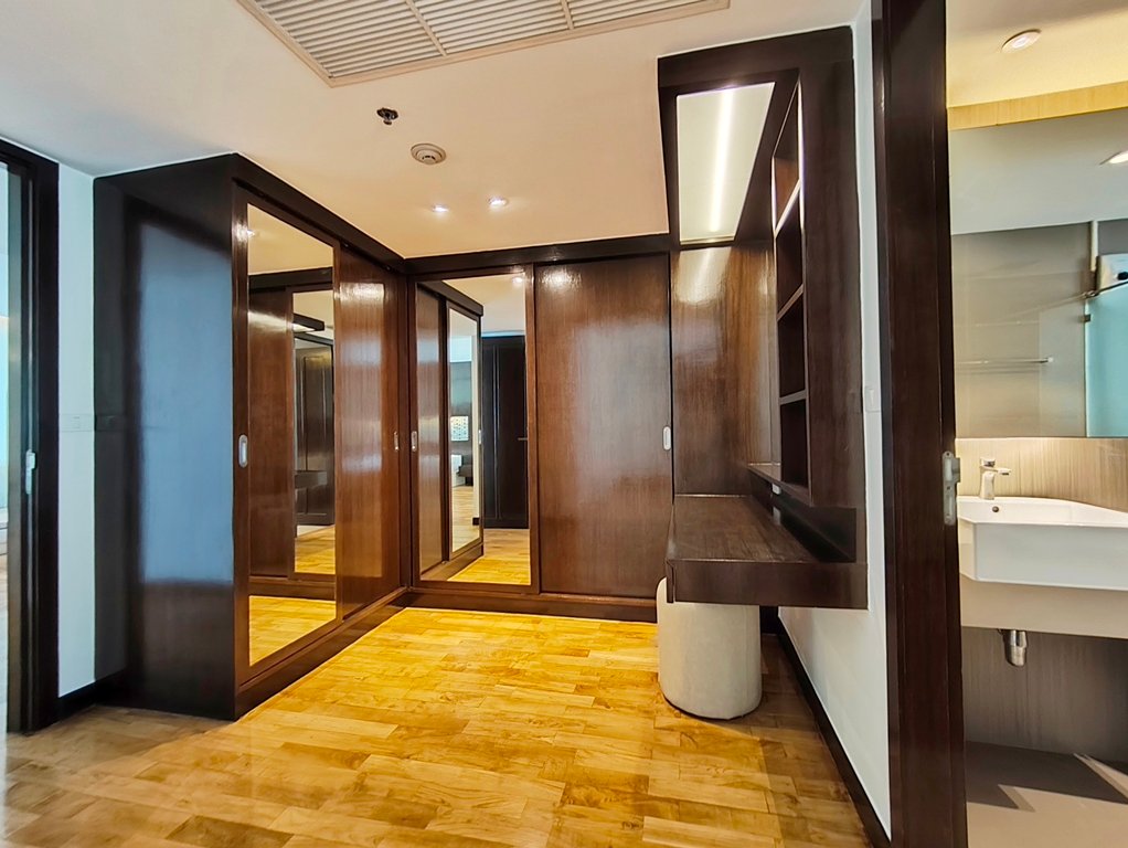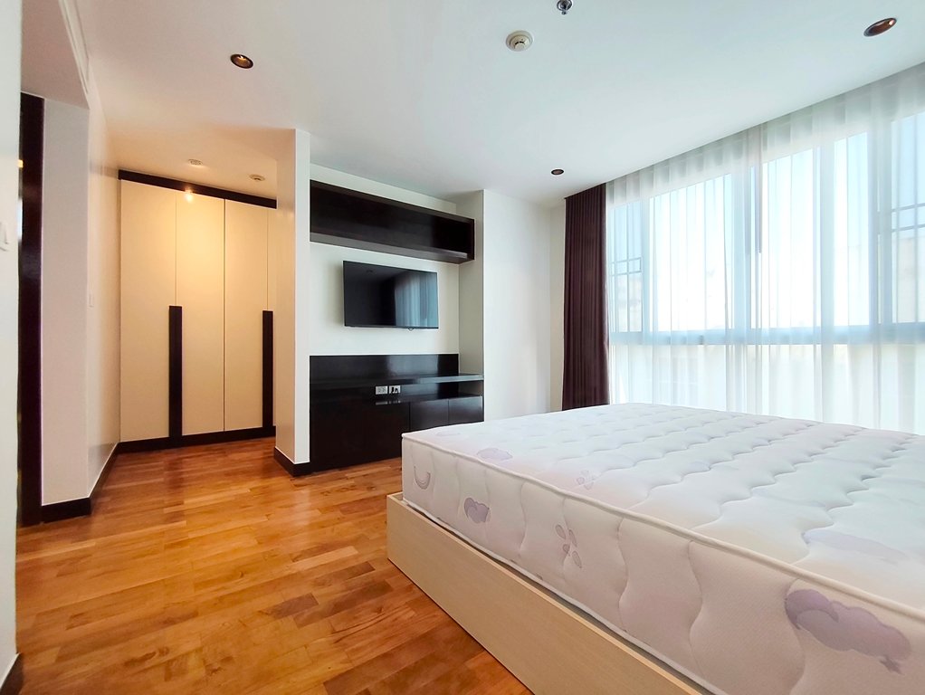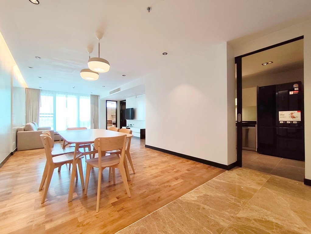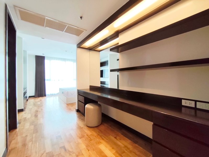 Family friendly 2 bedroom condo for rent in Sukhumvit Soi 49 is situated on a middle floor level of the building with a spacious balcony presenting an open suburban city view facing west. Fully furnished luxury 2 bedroom at Richmond Hills Residence Thonglor 25 for rent has 2 ensuite bathrooms, guest toilet, laundry room and a generous 155 SQM of usable living area.