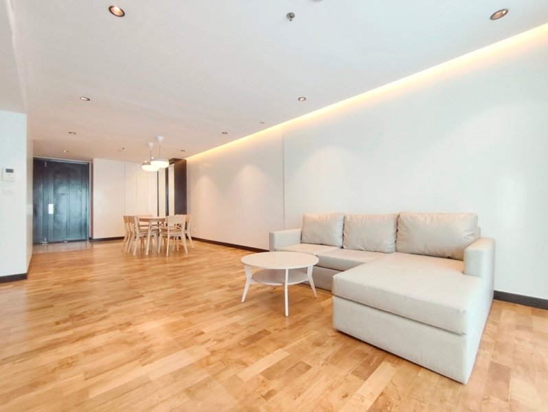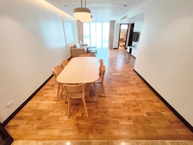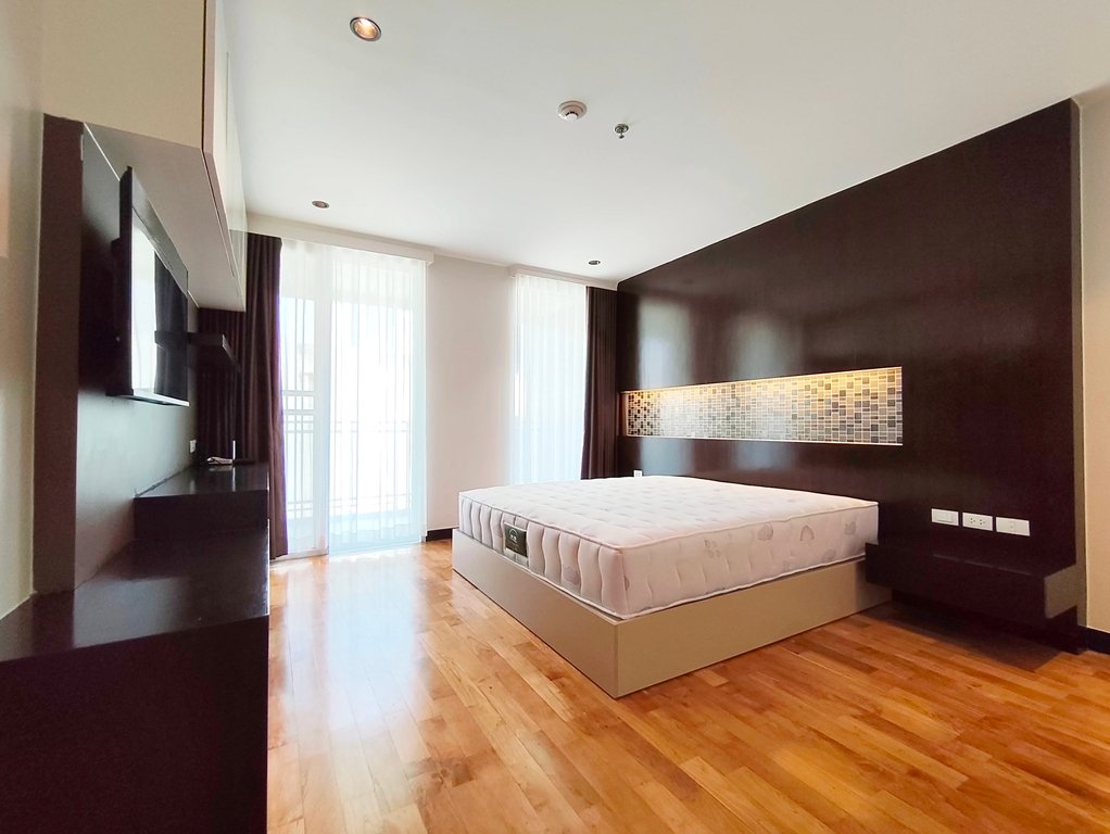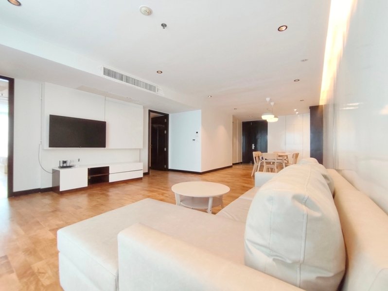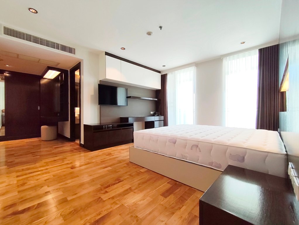 Family friendly 2 bedroom condo for rent in Sukhumvit Soi 49 is situated on a middle floor level of the building with a spacious balcony presenting an open suburban city view facing west. Fully furnished luxury 2 bedroom at Richmond Hills Residence Thonglor 25 for rent has 2 ensuite bathrooms, guest toilet, laundry room and a generous 155 SQM of usable living area.
