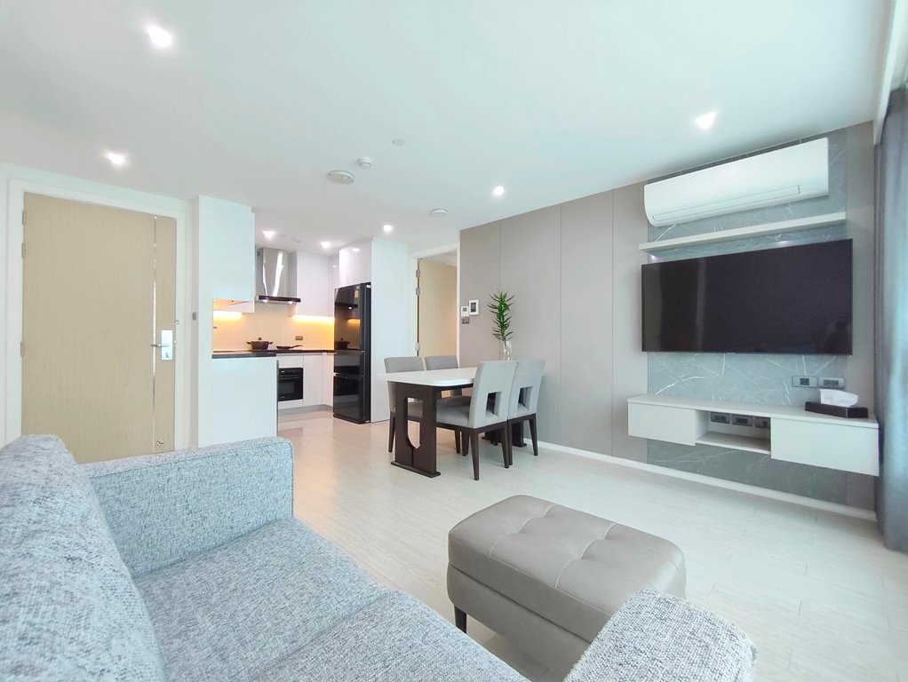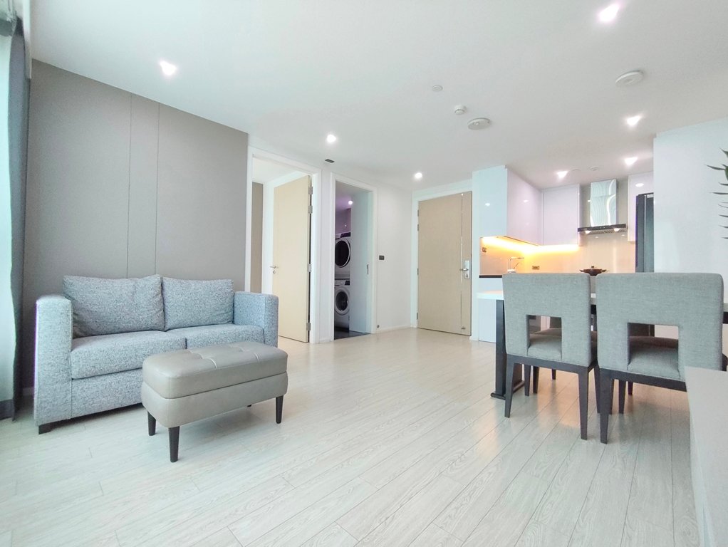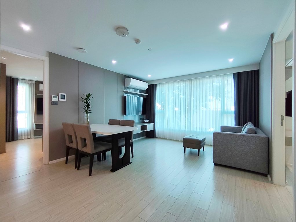 Delightful pet friendly 2 bedroom condo for rent near Ekkamai BTS Station is situated on a middle floor level of the building. Fully furnished luxury 2 bedroom at GM Residence for rent has 2 bathrooms and a generous 80 SQM of usable living space.