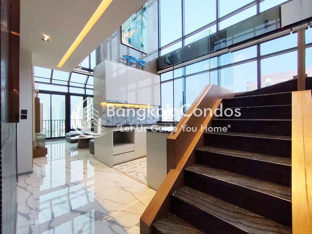 Pet friendly 2 bedroom duplex for rent in Sukhumvit Soi 63 is situated on a high floor level of the building with a spacious balcony presenting a panoramic city view. Fully furnished luxury 2 bedroom at M Thonglor 10 for rent has 2 bathrooms and a generous 101 SQM of usable living space.