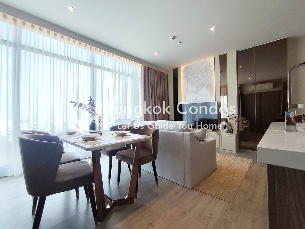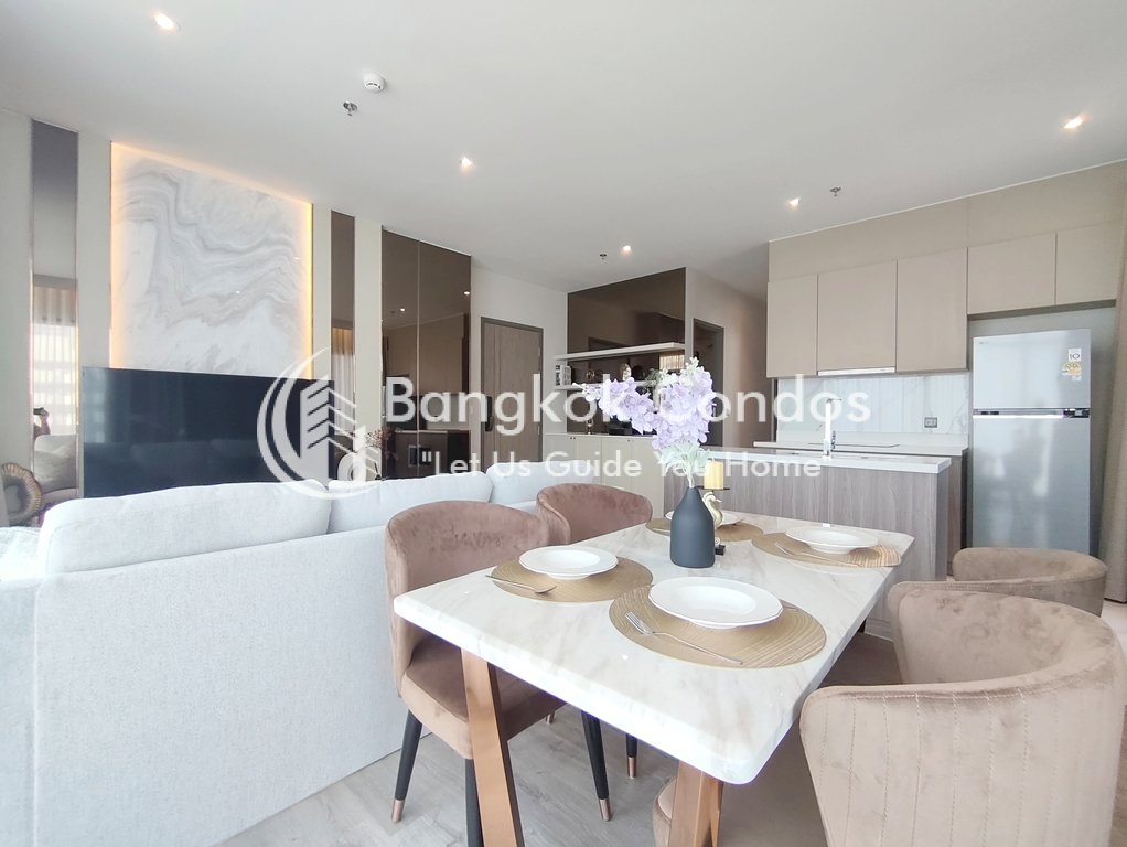 Exquisite 2 bedroom apartment for rent near Ekkamai BTS Station is situated on a middle floor level of the building with a spacious balcony. Fully furnished luxury 2 bedroom at RHYTHM Ekkamai Estate for rent has 2 bathrooms and a generous 80 SQM of usable living area.