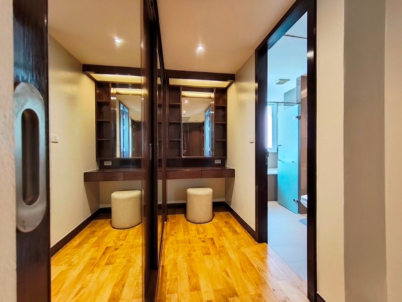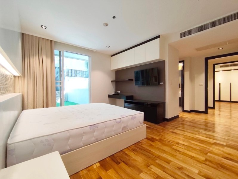 Delightful pet friendly 2 bedroom condo for rent in Thonglor Soi 25 is situated on the ground floor level of the building with a private garden. Fully furnished luxury 2 bedroom at Richmond Hills Residence Thonglor 25 for rent has 2 ensuite bathrooms, guest toilet, laundry room and a generous 145 SQM of usable living area.