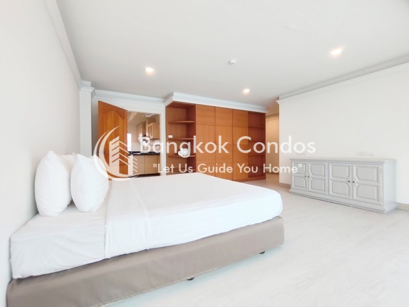 Sensational pet friendly 2 bedroom penthouse for rent near Nana BTS Station is situated on a high floor level of the building with a spacious balcony. Fully furnished luxury 2 bedroom at Chaidee Mansion for rent has 2 ensuite bathrooms, guest toilet, maid’s quarters with separate entrance and a generous 300 SQM of usable living area.
