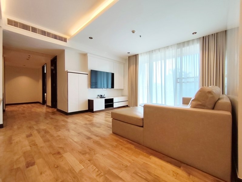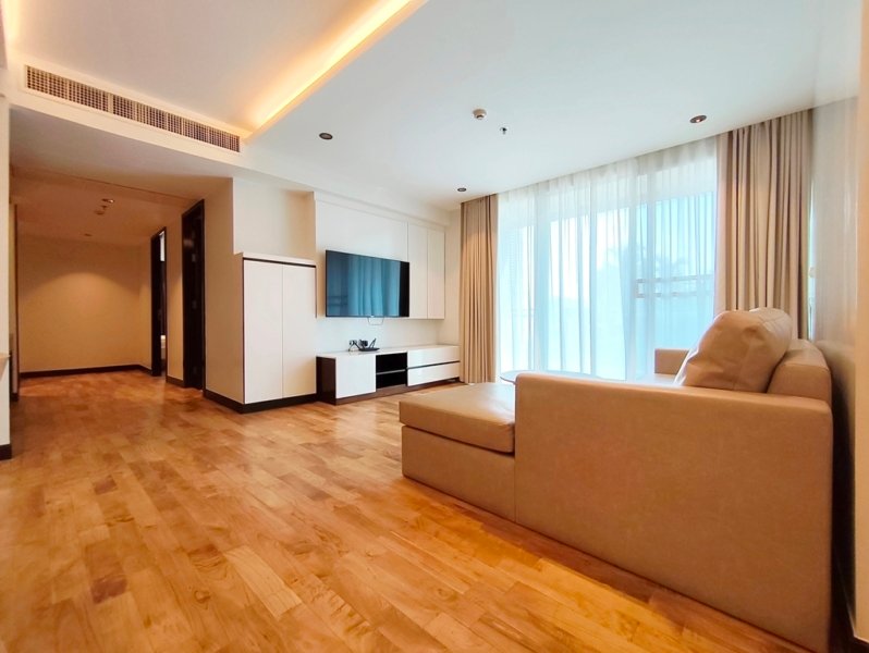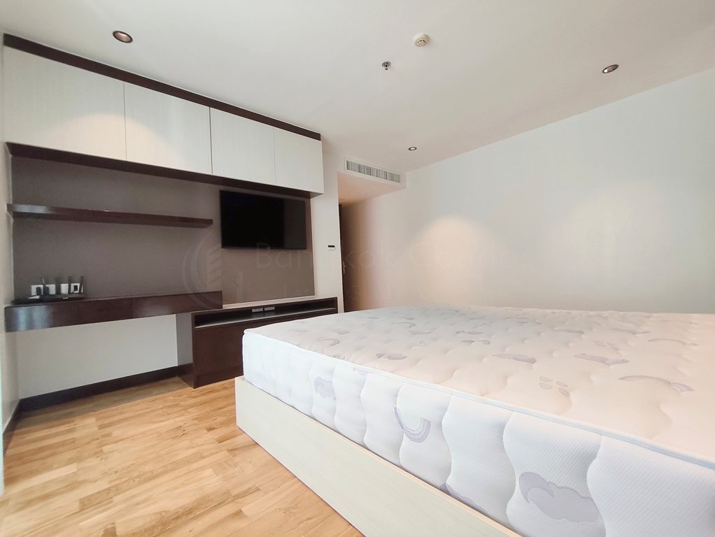 Tranquil pet friendly 2 bedroom apartment for rent in Thong Lo Soi 25 is situated on a middle floor level of the building with a spacious balcony. Fully furnished luxury 2 bedroom at Richmond Hills Residence Thonglor 25 for rent has 2 ensuite bathrooms, guest toilet, laundry room and a generous 145 SQM of usable living area.