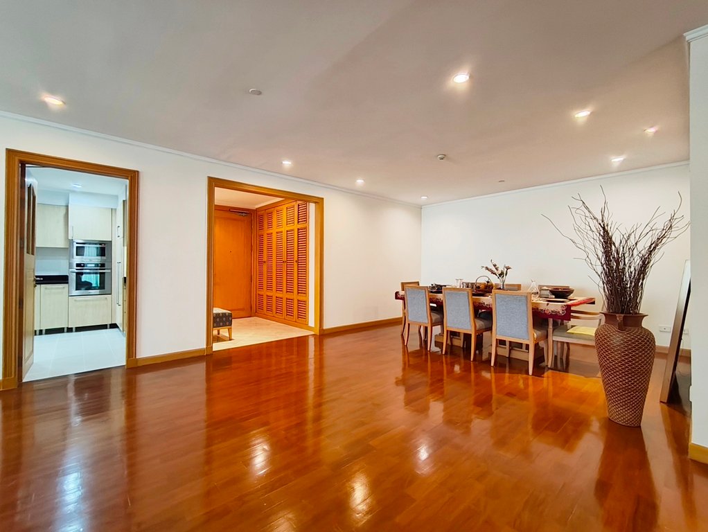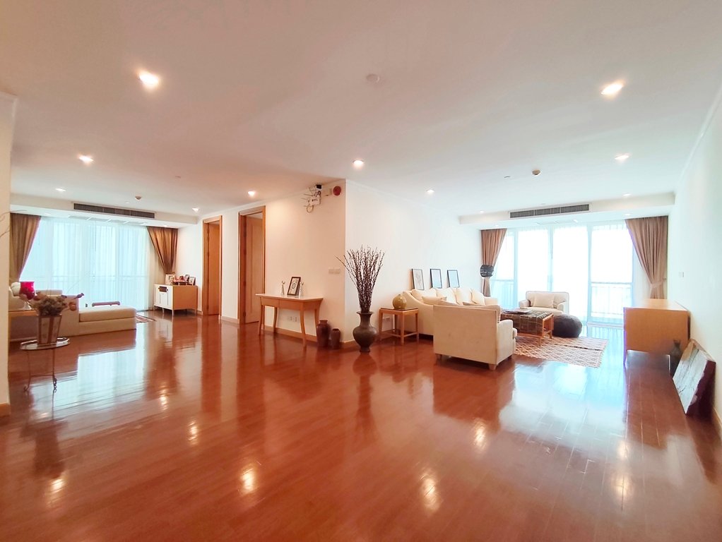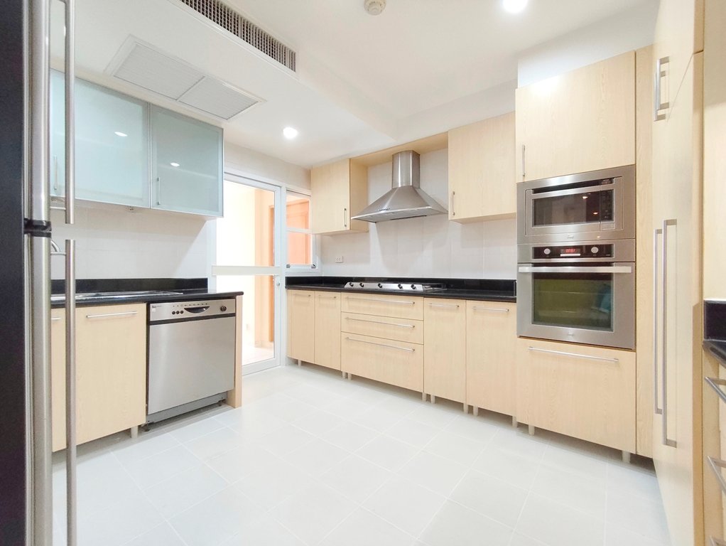 Remarkable pet friendly 3 bedroom condo for rent in Sukhumvit Soi 39 is situated on a high floor level of the building with a spacious balcony. Fully furnished luxury 3 bedroom at GM Height for rent has 3 bathrooms, maid’s quarters with separate entrance and a generous 215 SQM of usable living area.