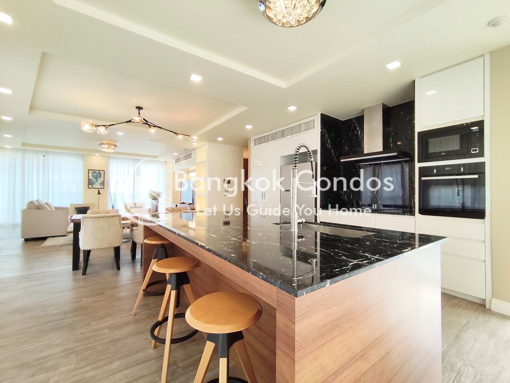 Phenomenal 3+1 bedroom condo for rent near Ekkamai BTS Station is situated on a lower floor level of the building. Fully furnished luxury 3+1 bedroom at Penthouse Condominium 2 for rent has 3 bathrooms and a generous 230 SQM of usable living area.