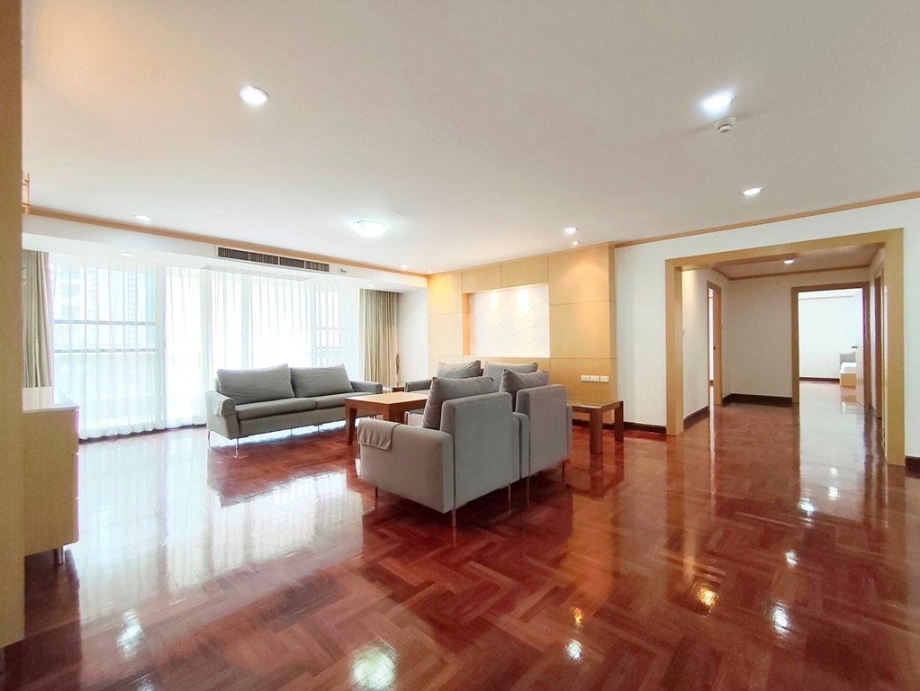 Exceptional pet friendly 3 bedroom condo for rent near Phrom Phong BTS Station is situated on a high floor level of the building with a spacious balcony. Fully furnished luxury 3 bedroom at Asa Garden for rent has 3 bathrooms, storage room, maid’s quarters with separate entrance and a generous 300 SQM of usable living area.