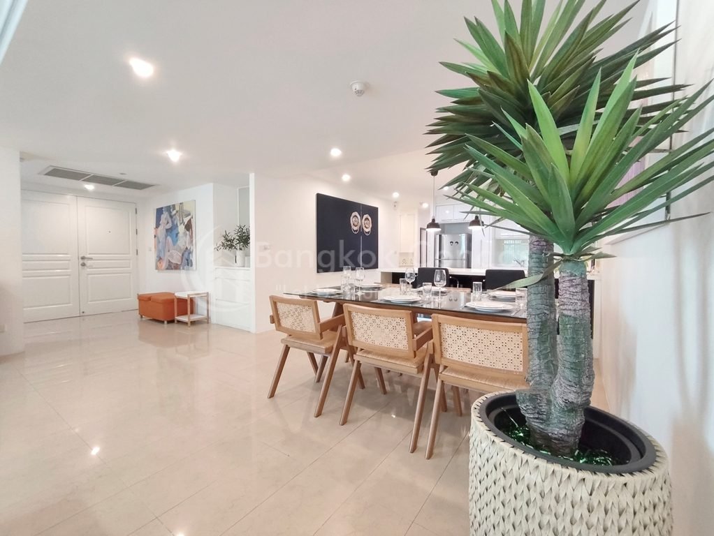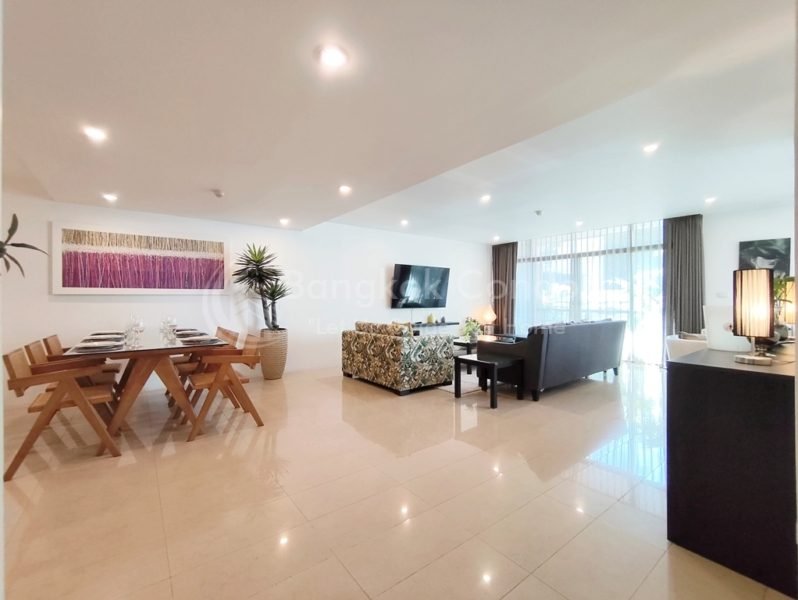 Eclectic pet friendly 3 bedroom condo for rent near Ekkamai BTS Station is situated on a lower floor level of the building with a spacious balcony. Fully furnished luxury 3 bedroom at Baan Ananda for rent has 2 bathrooms and a generous 154 SQM of usable living area.