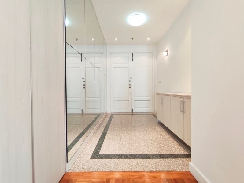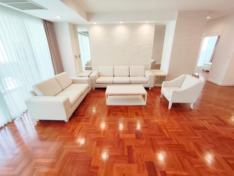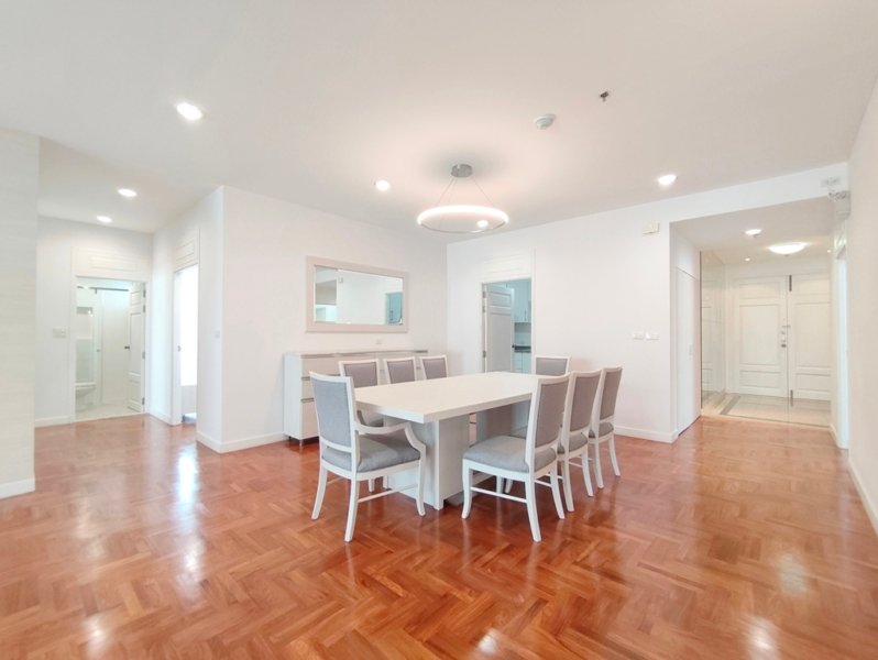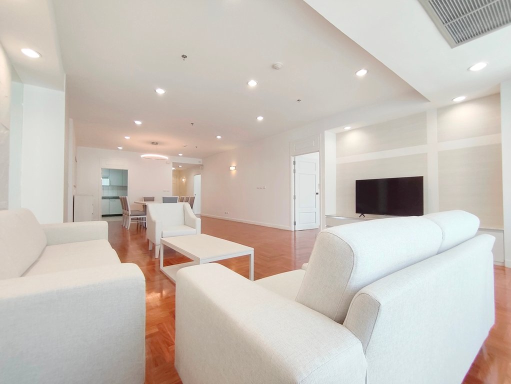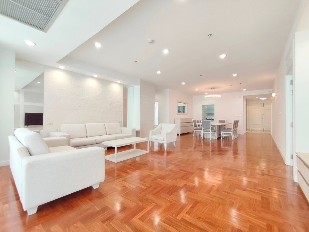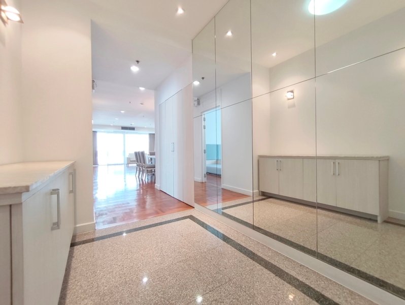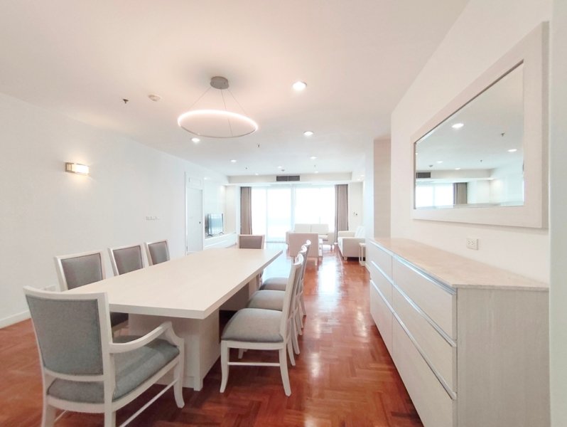 Immaculate pet friendly 4 bedroom apartment for rent near Phrom Phong BTS Station is situated on a high floor level of the building with a spacious balcony. Fully furnished luxury 4 bedroom at The Grand Sethiwan for rent has 4 bathrooms, storage room, maid’s quarters with separate entrance and a generous 250 SQM of usable living area.