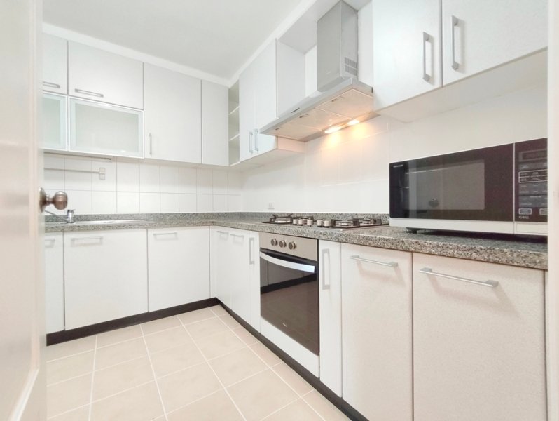The European kitchen features a refrigerator, built-in oven, microwave, 1 plate electric-stove + 4 plate gas-stove with extractor fan as well as a separate washing and drying machine.