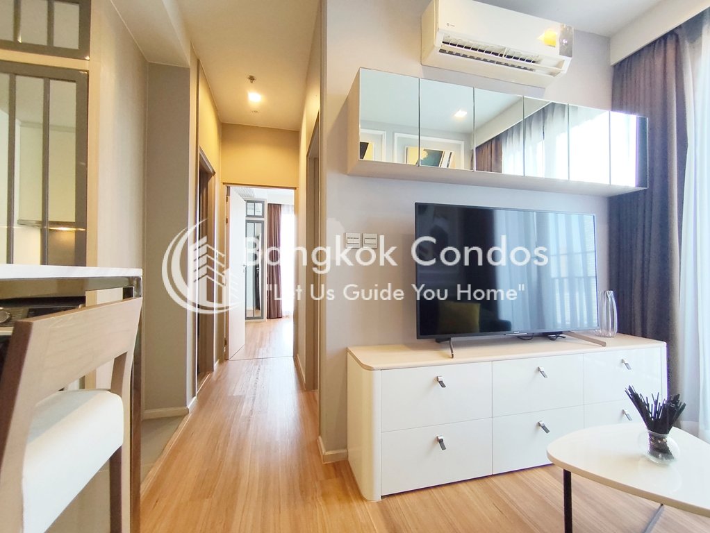 Designer pet friendly 2 bedroom apartment for rent in Thonglor is situated on a high floor level of the building with a spacious balcony presenting a panoramic city view. Fully furnished luxury 2 bedroom at M Thonglor 10 for rent has 2 bathrooms and a practical 58 SQM of usable living space.