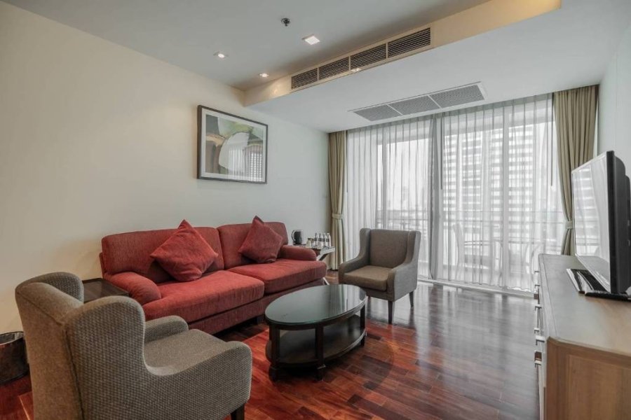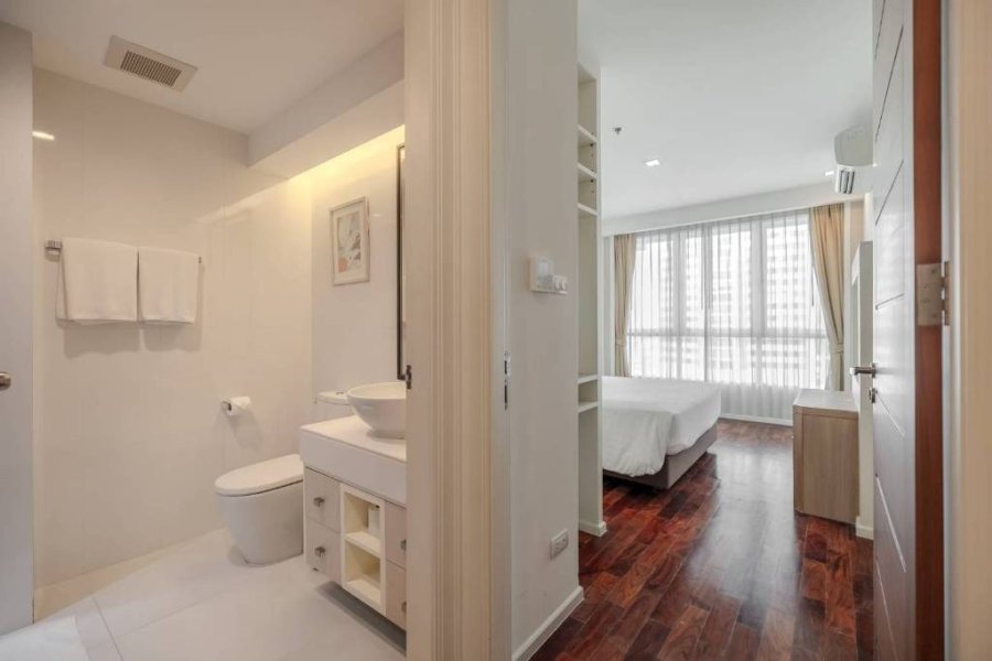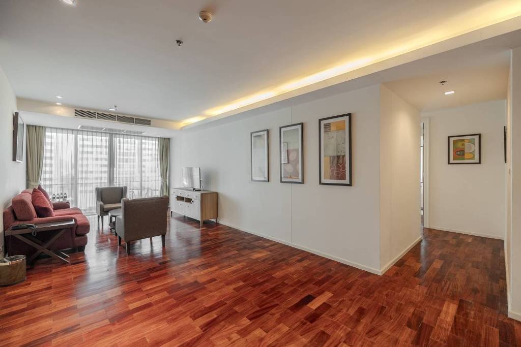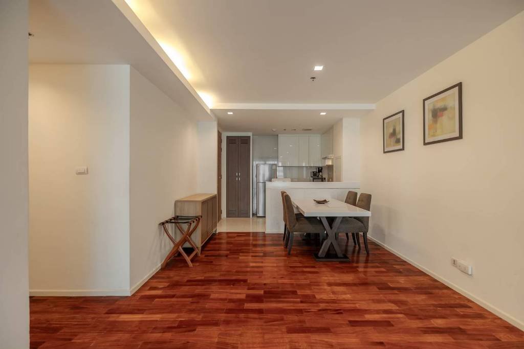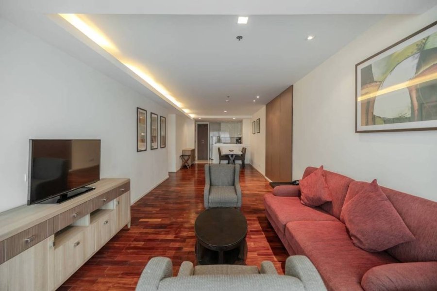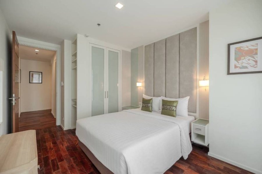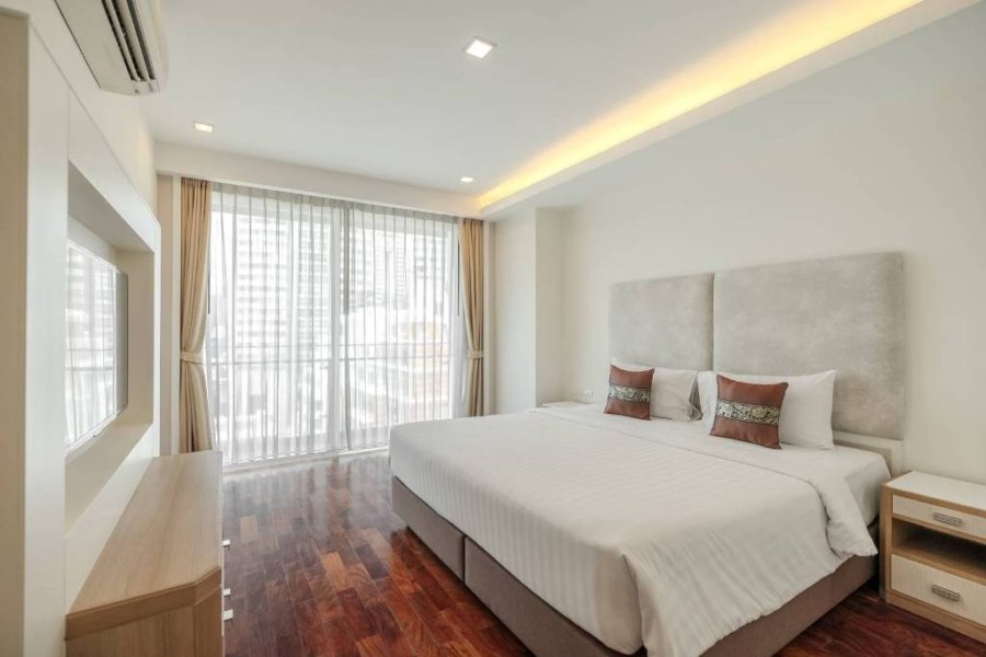 Remarkable pet friendly 2 bedroom apartment for rent in Sukhumvit Soi 22 is situated on a middle floor level of the building with a spacious balcony. Fully furnished luxury 2 bedroom at GM Serviced Apartment for rent has 2 bathrooms and a generous 111 SQM of usable living area.