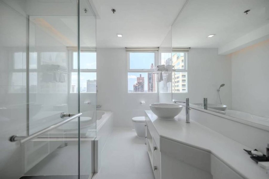 Executive pet friendly 3 bedroom apartment for rent near Asok BTS Station is situated on a middle floor level of the building with a spacious balcony. Fully furnished luxury 3 bedroom at GM Serviced Apartment for rent has 3 ensuite bathrooms, guest toilet, maid’s quarters with separate entrance and a generous 182 SQM of usable living area.