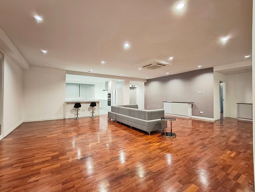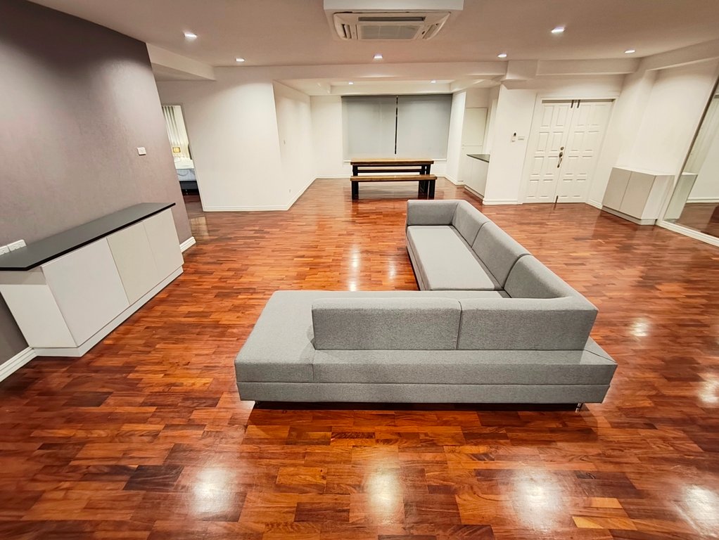 Pet friendly 3 bedroom apartment for rent near Thong Lo BTS Station is situated on a lower floor level of the building with a spacious balcony. Fully furnished luxury 3 bedroom at P. R. Home II (PR Home 2) for rent has 2 bathrooms and a generous 300 SQM of usable living area.