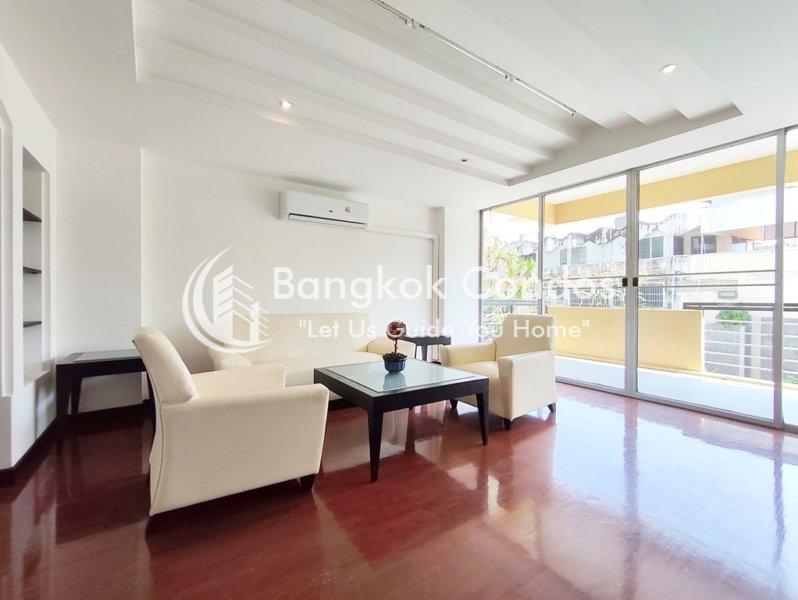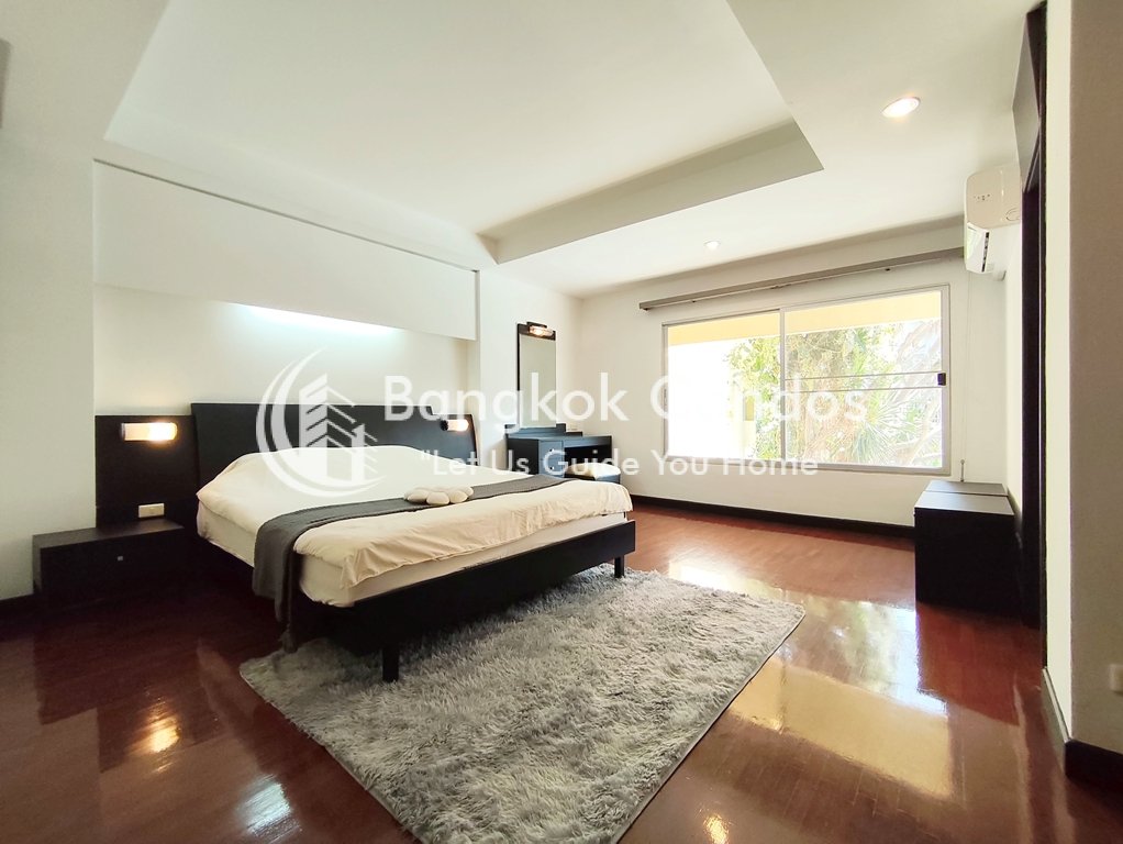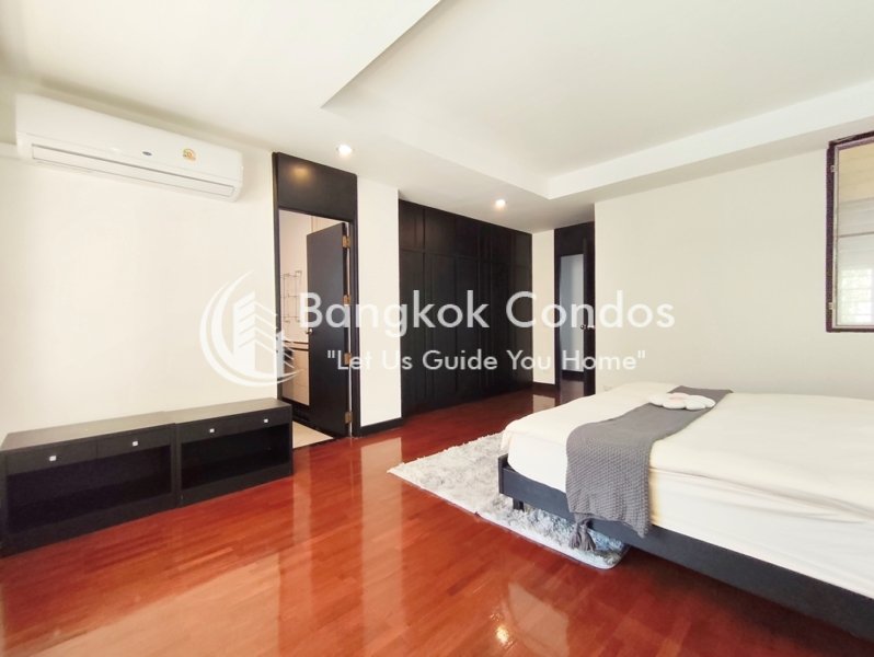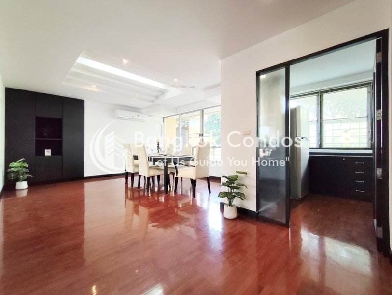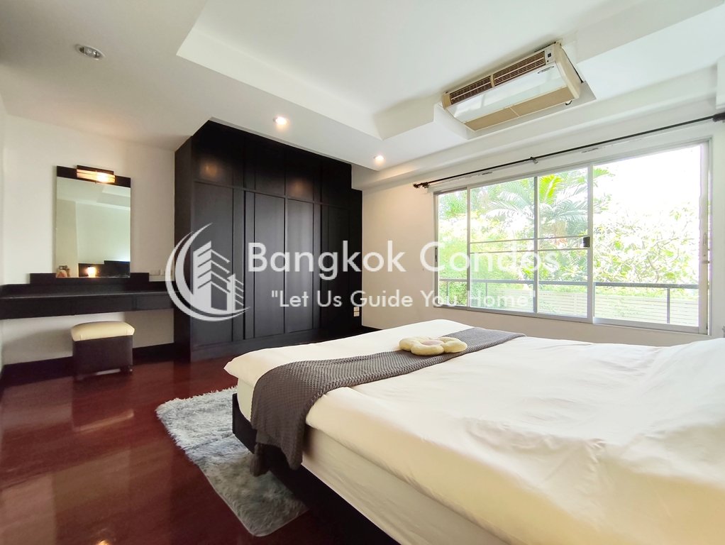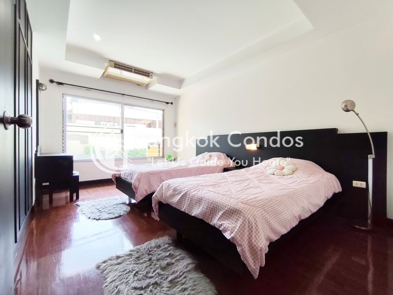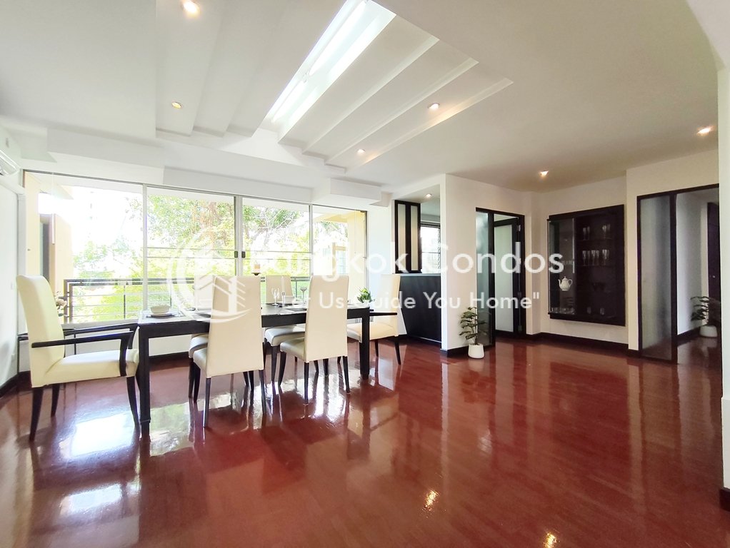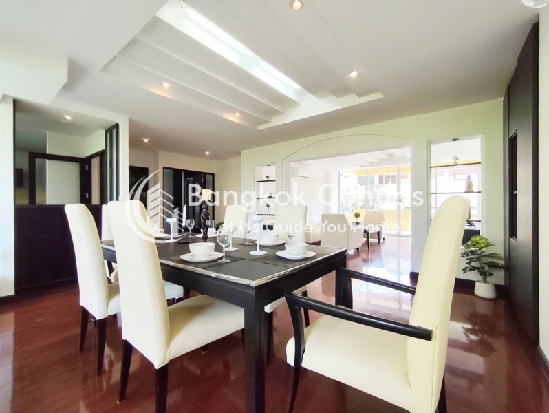 Pet friendly 3 bedroom apartment for rent near Thong Lo BTS Station is situated on a lower floor level of the building with a spacious balcony presenting a tranquil swimming pool view. Fully furnished luxury 3 bedroom at Charktip Court for rent has 2 bathrooms, storage room and a generous 200 SQM of usable living area.