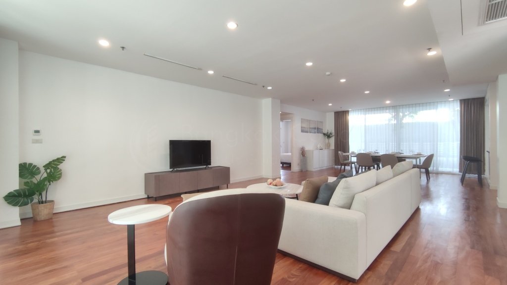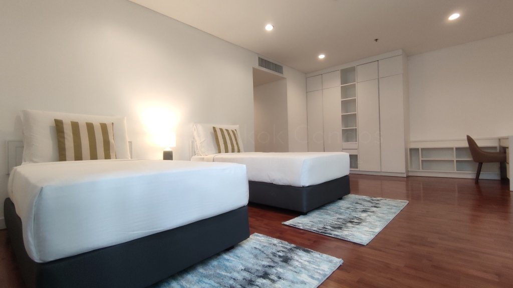 Exquisite 4 bedroom pet friendly apartment for rent near Ekkamai BTS Station is situated on a lower floor level of the building with a spacious balcony. Fully furnished luxury 4 bedroom at Shama Ekamai Bangkok for rent has 4 ensuite bathrooms, guest toilet, maid’s quarters and a generous 290 SQM of usable living space.