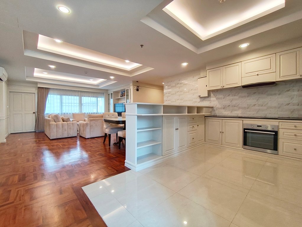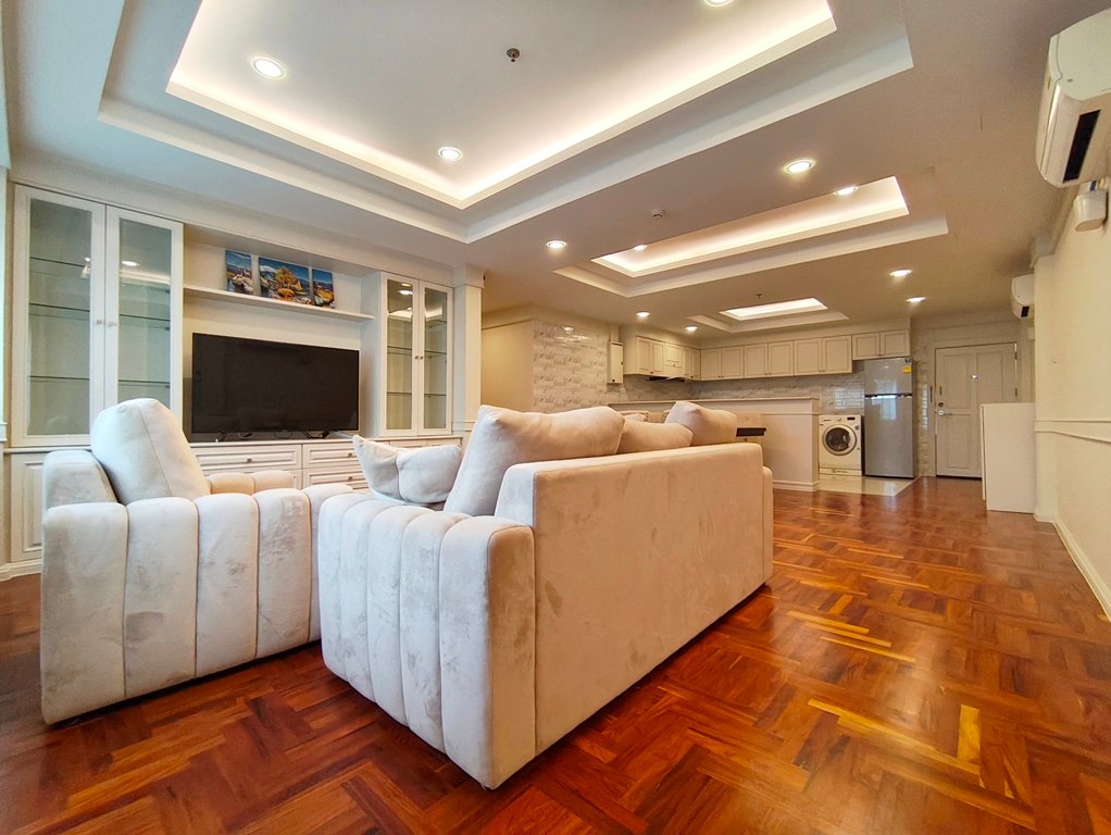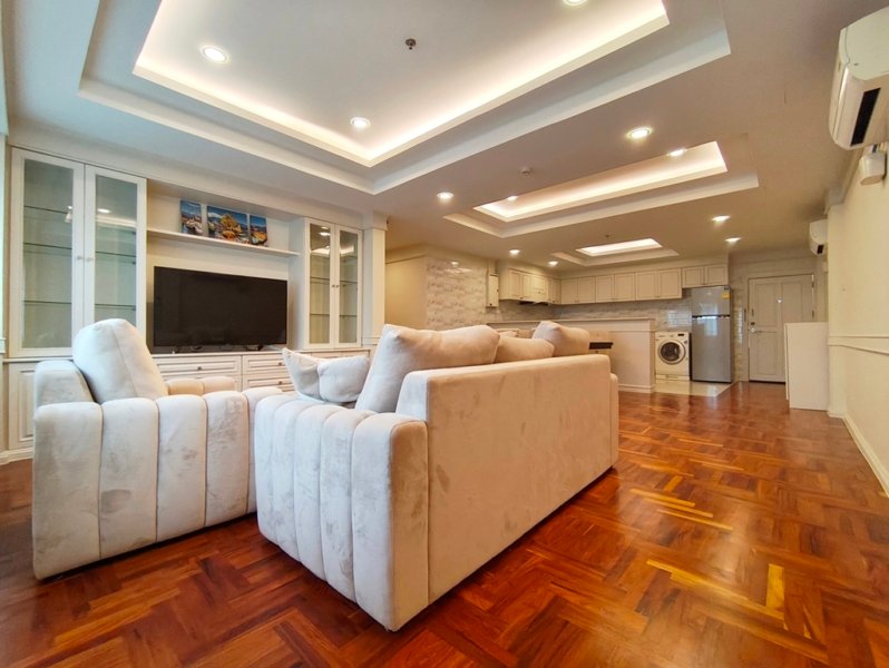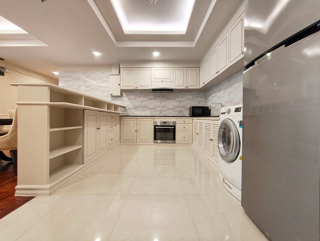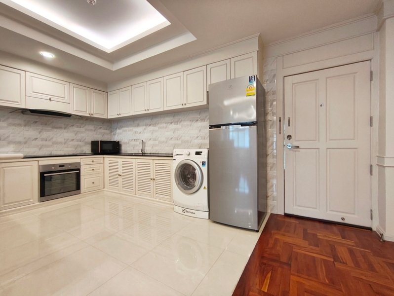 Description: Fully furnished 2 bedroom near The American School of Bangkok (ASB) has 2 bathrooms and a generous 150 SQM of usable living area. The open European kitchen features a refrigerator, built-in oven, microwave, 2 plate electric-stove with extractor fan and a washer/dryer machine combo.